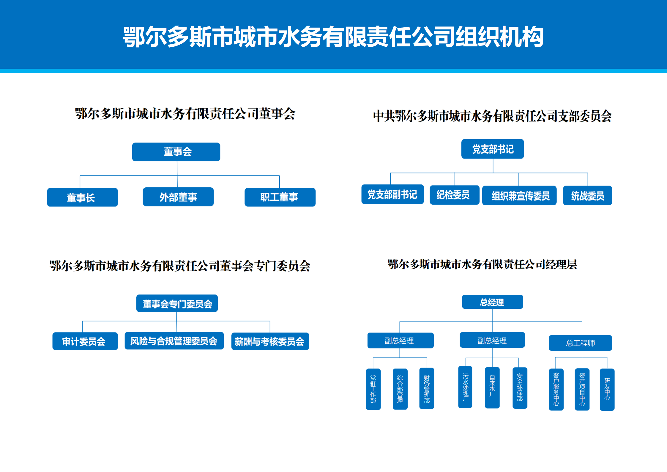 | 名稱:鄂爾多斯市城市水務(wù)有限責(zé)任公司 | 簡(jiǎn)稱:城市水務(wù)公司 法定代表人: 馬軍 |