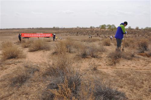 2017年4月14日,我公司組織員工19人到鄂前旗三段地馬場井村開展“保護(hù)母親河 愛我鄂爾多斯—2017植綠護(hù)綠行動”。馬場井村長年處于干旱、多風(fēng)沙季節(jié),為起到防風(fēng)固沙作用,通過與當(dāng)?shù)啬撩裣嗷f(xié)作利用一整天時間種植了20畝灌木檸條,為改善當(dāng)?shù)厣鷳B(tài)環(huán)境做出一份貢獻(xiàn)。
