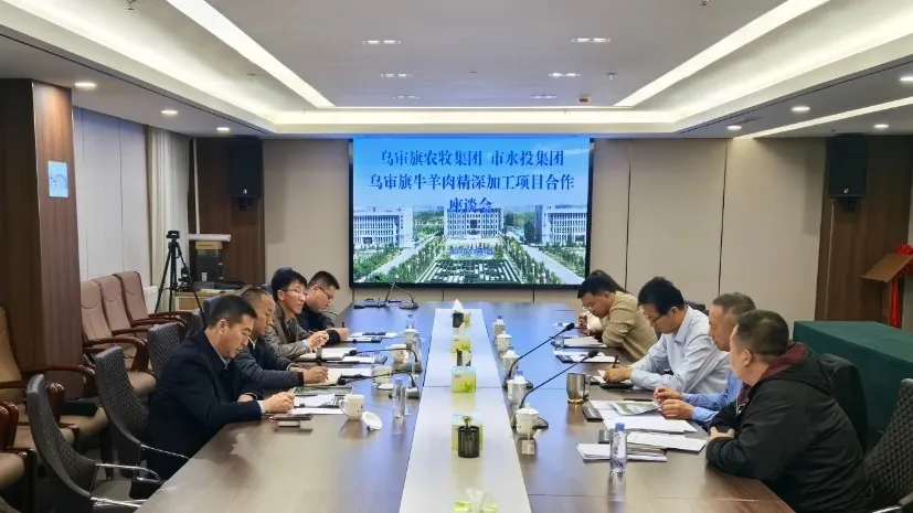 11月4日,烏審旗農(nóng)牧集團董事長張陸云一行到市水投集團就烏審旗牛羊肉精深加工項目合作進行座談交流,市水投集團黨委副書記、總經(jīng)理張海濱,市水投集團副總經(jīng)理、水投鍶源公司董事長王玉成出席座談會,相關人員和部門參加座談。