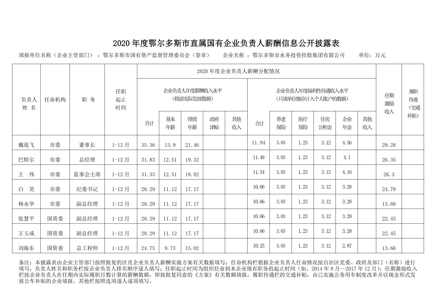2020年度鄂爾多斯市直屬國有企業(yè)負(fù)責(zé)人薪酬信息公開披露表