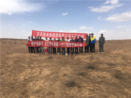 2017年4月14日,我公司組織員工19人到鄂前旗三段地馬場井村開展“保護(hù)母親河 愛我鄂爾多斯—2017植綠護(hù)綠行動”。馬場井村長年處于干旱、多風(fēng)沙季節(jié),為起到防風(fēng)固沙作用,通過與當(dāng)?shù)啬撩裣嗷f(xié)作利用一整天時間種植了20畝灌木檸條,為改善當(dāng)?shù)厣鷳B(tài)環(huán)境做出一份貢獻(xiàn)。